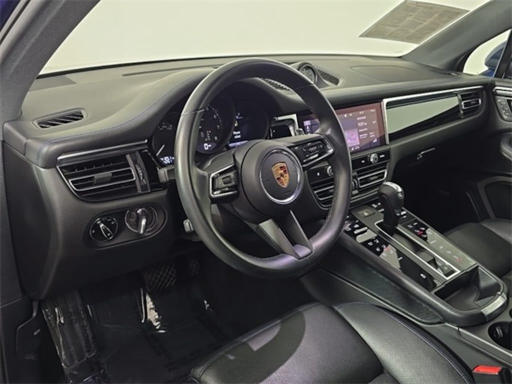 Gentian Blue Metallic 2022 Porsche Macan Leather Package in Black with Deviated Stitching in Gentian Blue.